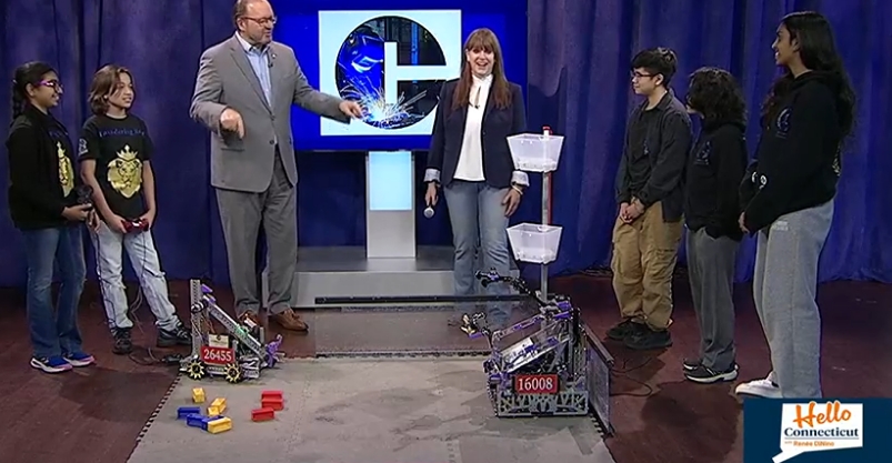 In the NewsThe CT Office of Manufacturing supports FIRST Robotics in schools across the state Posted on April 8, 2025May 21, 2025 by Jose Pabon 08 Apr Follow this link to watch News 3’s coverage on a FIRST robotics team joining HELLO CONNECTICUT with Rénee DiNino to share their experience in building and operation a robot.